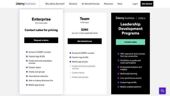 There are a few larger plans, including Udemy Business Team Plan, which will cost you $360 per year, per-user or the Enterprise Plan. You’ll have to get in touch with Udemy for costs of the latter, but you’ll need a minimum of 21 members.