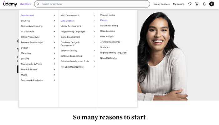 Udemy has 64+ million students, offers 210,000+ courses in 75+ languages and is one of the most popular and well-regarded learning sites out there.